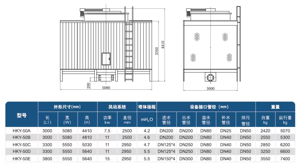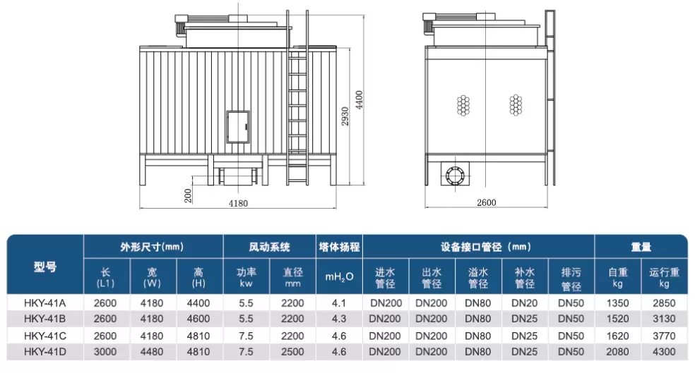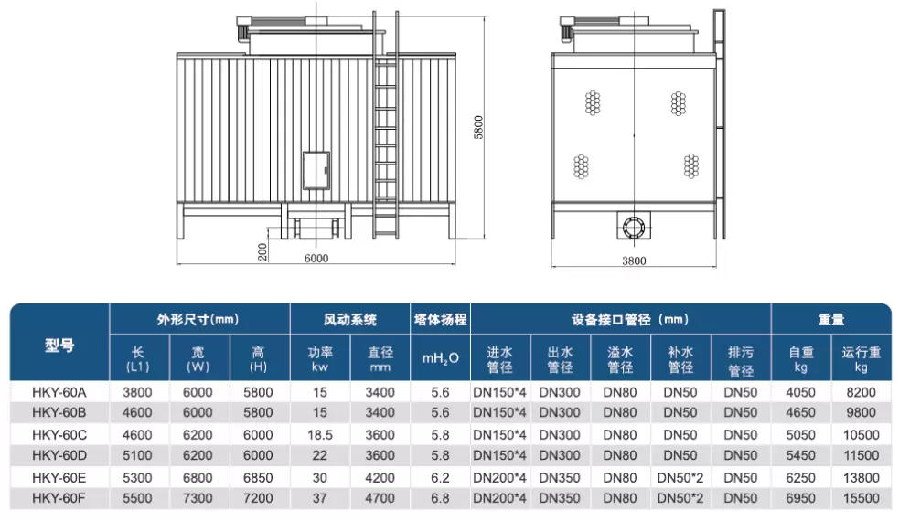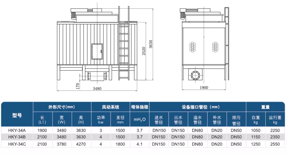 高效节能:在满足同样冷效的前提下,冷却塔塔体尺寸、填料换热面积、风机直径大,则风机转速底,风机轴功率降低,为用户节约运行成本。