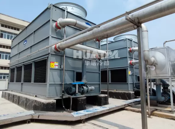 闭式冷却塔系统在中央空调等暖通领域主要冷却水冷螺杆机、溴化锂机组、地源热泵等,闭式冷却塔系统不结垢的优势有效控制污垢系数。近日江苏华塔采用低温恒压变频冷却系统,使用闭式冷却塔与水冷螺杆机组组合使用,秋冬季使用闭式冷却塔,夏季使用冷冻机(同时闭式冷却塔冷却冷冻机),系统实现自动切换控制,为客户每年节约电耗2/3。