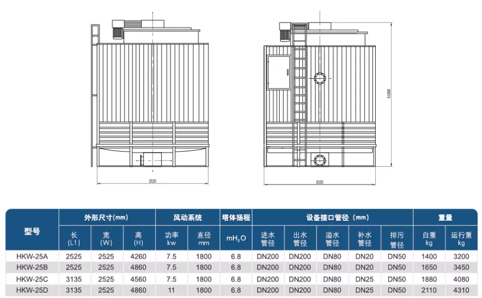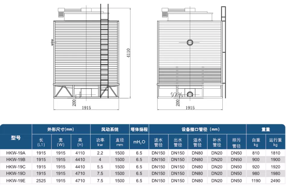 冷却效果达到设计冷效的100%,漂水率≤0.001%,外观新颖;低噪音、占地小、节能环保、耐腐蚀、使用寿命长。